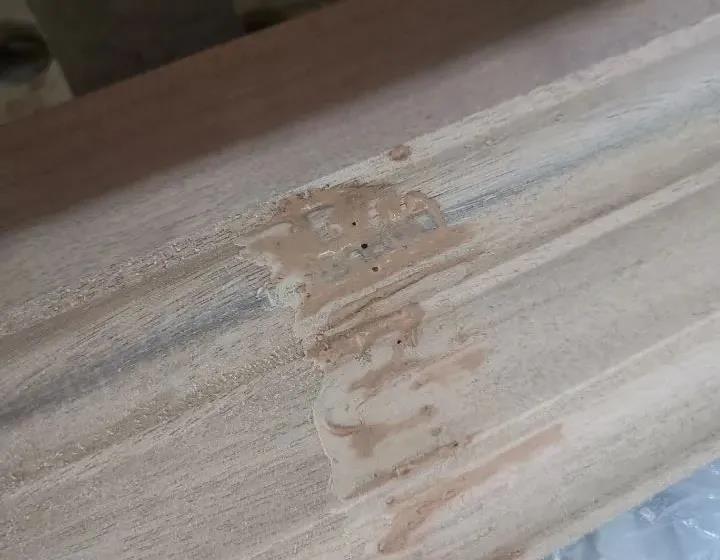 針對局部樹脂(油囊)的材料,可先用刀挖除油囊部位,再用同種材料(木紋方向應(yīng)一致)進行填補;如果不允許挖除,可用有機溶劑清洗,松節(jié)油、漆油、甲苯、丙酮等清洗,去掉油脂后,預(yù)防二次滲出,需要先做封固,再按工序進行作業(yè)。
