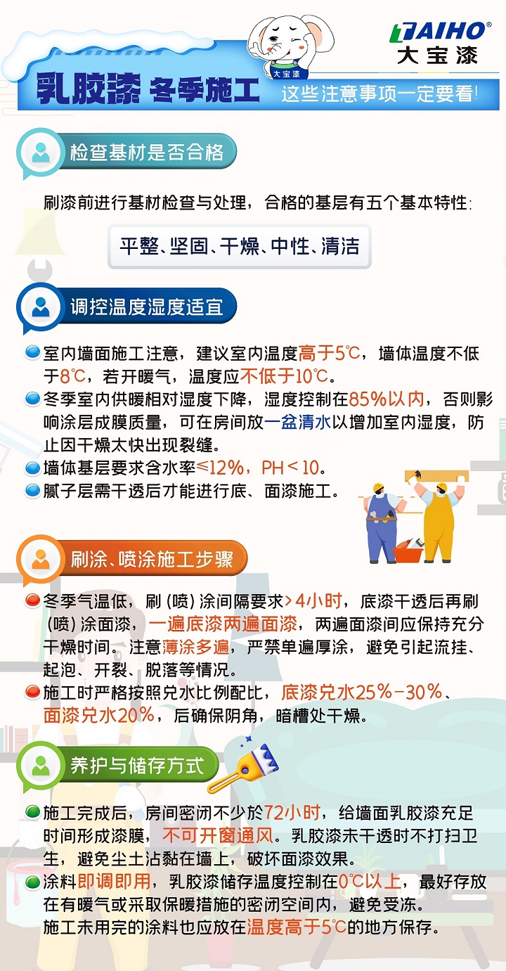 如果您對冬季墻面施工還有疑問,歡迎留言,大寶漆會為您詳細解答!