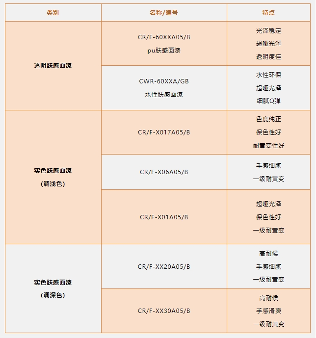 膚感漆可適配多種常見家具板材。其工藝主要通過在一般底漆上噴涂一道膚感面漆,不直接接觸基材。只要底漆與基材通過附著力測(cè)試,即可廣泛應(yīng)用于各類板材表面。