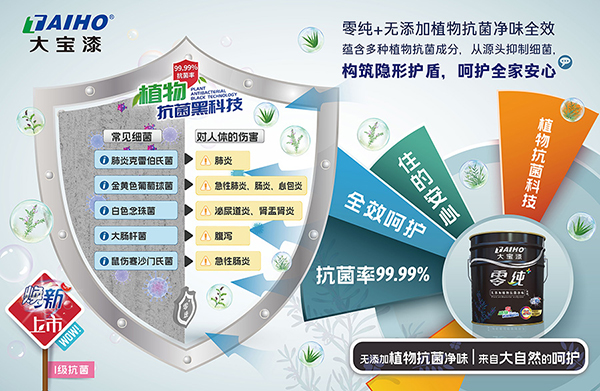 大寶漆「零純+植物抗菌」系列煥新升級,融合【無添加】凈味配方,完成從“抗菌防霉”到“純凈呼吸”的安全躍升—無論新房初裝,還是舊居翻新,皆可安心交付。