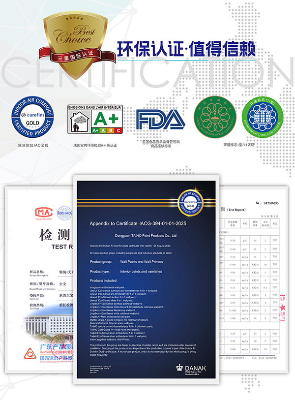 產品通過GB18582-2020檢測,有害物質均未檢出,真正做到即刷即住,盡享自然安心。