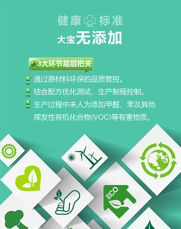 *無添加:指配方設計和生產過程中不人為添加VOC、甲醛、重金屬、APEO