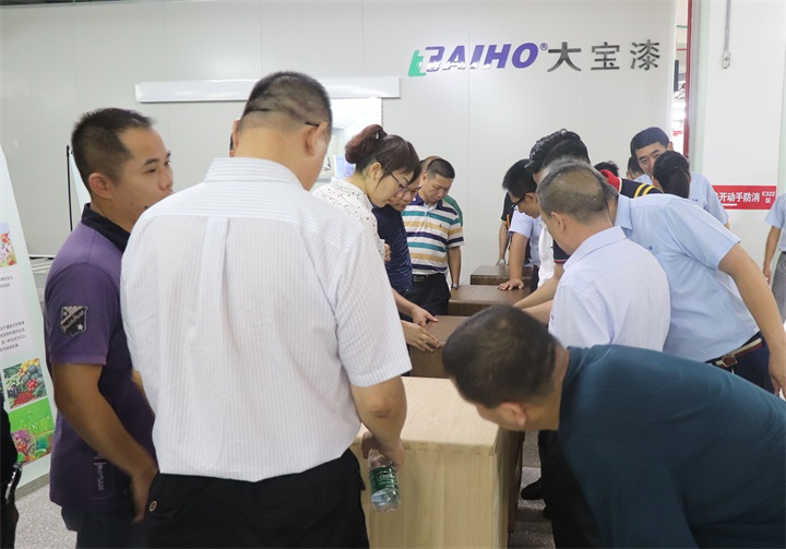 面對大寶化工先進的生產管理模式、干凈整潔的廠區環境,關會長一行對大寶漆給予了極大的肯定和高度贊譽。隨后,雙方就就木門涂裝工藝、產品技術、木門行業發展現狀和趨勢等展開了深入交流,共同探討木門發展之道。