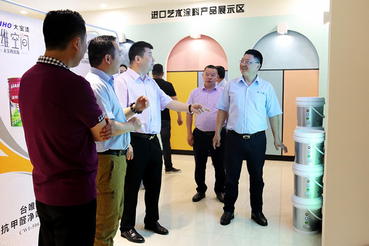 ▲業(yè)三部王華生課長介紹形象展示區(qū)及涂料產(chǎn)品