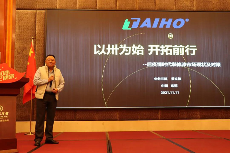 隨后,業三部黃文敏顧問從政策、需求、經營、供應層面,與大家深入分析后疫情時代裝修漆經營面臨的市場機會點,結合競爭品牌的市場營銷策略,建議經銷商依靠公司提供的新產品和政策支持,培訓服務團隊的專業知識,拓展全渠道產業鏈的經營。黃顧問并借用華為軍團會議的主題“沒有退路就是勝利的道路”希望全國裝修漆經銷商能直面挑戰,抓住市場機遇,開拓前行。