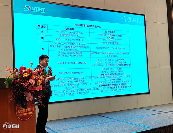 緊隨其后,三華科技吳總以數字化調色系統展示色彩科技的力量,以AI與數據精確掌控個性化需求,為家具漆調色系統賦予更多可能。