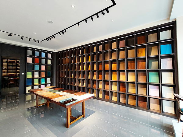 作為本次經銷商大會的壓軸行程,與會嘉賓在午宴后前往山東大寶家具漆服務中心深度考察。步入展廳,極具現代感的色板陣列即刻映入眼簾—木器漆呈現天然肌理之美,金屬涂層閃耀科技光澤,塑膠與玻瓶的表面處理更突破傳統工藝邊界。