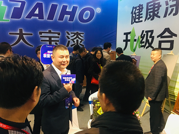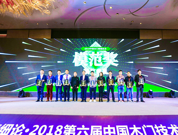 大寶漆榮獲木門精細(xì)技術(shù)模范獎(jiǎng)(左一謝偉代表領(lǐng)獎(jiǎng))