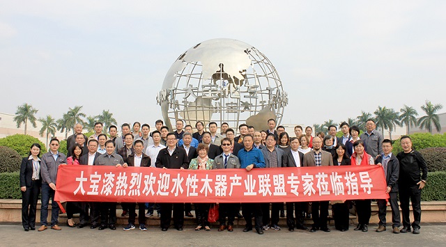 12月3日,中國水性木器涂料產業聯盟(以下簡稱“水性涂料聯盟”)主席楊獻、廣東涂料協會會長黃開、中國涂料工業協會雜志社總經理趙中國及其聯盟成員一行近50人到東莞大寶化工參觀交流,大寶化工企劃部葉子琛執行經理、技術部林進輝副理、熊學軍課長接待了參訪人員一行。