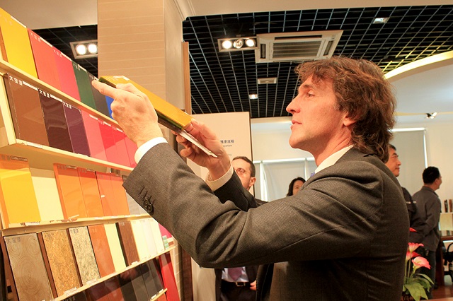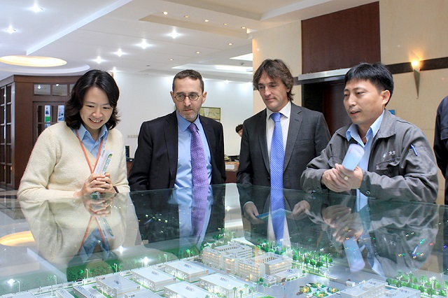 Barpimo公司人員先到大寶國際模型區(qū)進行了解,在業(yè)務(wù)部陳衛(wèi)華副理的介紹下,參訪人員對大寶集團各企業(yè)體的廠區(qū)規(guī)劃及歷史發(fā)展有了一個初步的認(rèn)識。隨后參訪人員對研發(fā)課、中央實驗室、國內(nèi)市場展廳、色板中心和智能涂裝測試線等一一進行參觀。