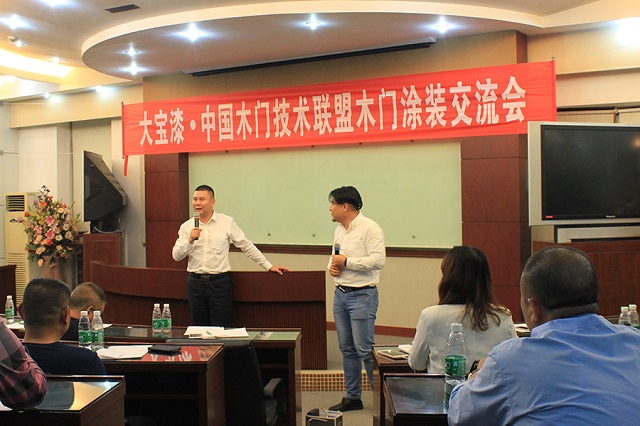 11月18日,中國木門技術(shù)聯(lián)盟(以下簡稱“木門聯(lián)盟”)成員一行到東莞大寶化工參觀交流,大寶化工業(yè)務(wù)部周志鴻執(zhí)行經(jīng)理、謝偉副理接待了到訪人員一行,就木門企業(yè)在“油改水”遇到的問題進行交流。