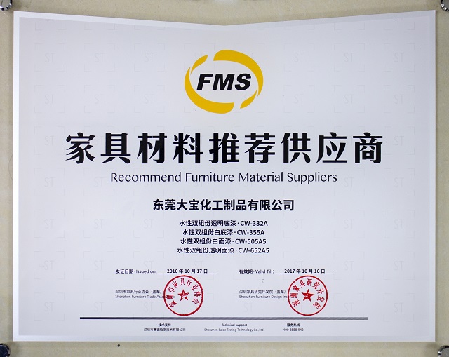 因為始終對品質及服務的堅持,大寶漆已先后斬獲業界多項殊榮,并通過中國環境標志產品、國家實驗室等權威認證。此次又獲“推薦供應商”的榮譽,是行業對大寶漆的認可和鼓舞。作為一個優秀的家具原材料供應商,大寶漆將繼續堅持品質創新,恒守“永續環保”的承諾。未來,大寶漆會繼續專注于高品質涂料的研發,給消費者提供更多品質優越、健康環保的涂料產品。