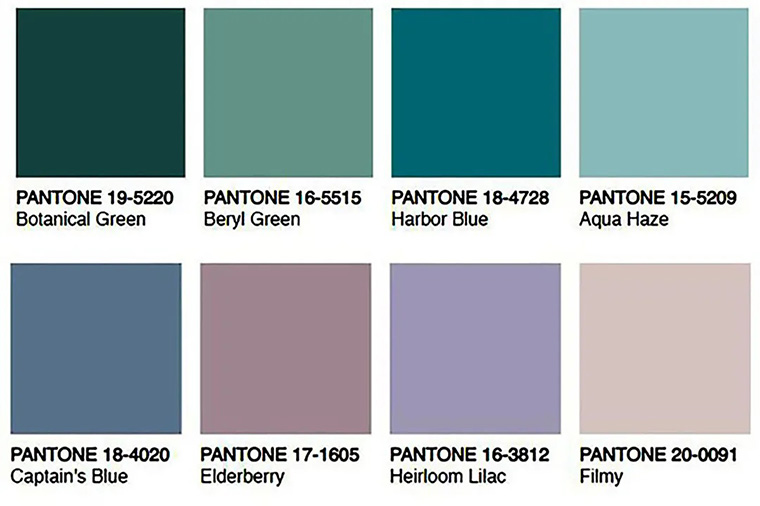 秋冬室內色彩趨勢,以深綠色為主調,輔助較為清新淡雅的藍、粉、紫與裸色,表達出平和溫潤的安定力,發散令人愉悅的舒適感,微妙吸睛。