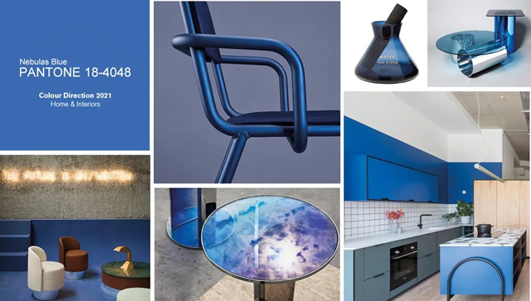 藍與白的空間對話,干凈通透簡練的流線元素賦予空間別樣的前衛藝術與格調,超現實的星云藍從高光澤到啞光金屬和超啞光麂皮絨的軟裝都會出現在我們的周遭。