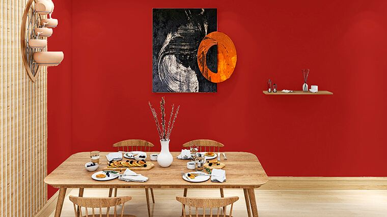 在考慮色彩配置時,若無法接受飽和度太高的紅,非常推薦使用大寶R8855-40D故宮紅,屬于低彩度深紅色系,除了與上述顏色搭配外,更適合放在空間某處作為焦點,例如玄關、電視背景墻..等,讓人不自覺的往此處吸引,在視覺上擁有亮點帶出時尚摩登感。